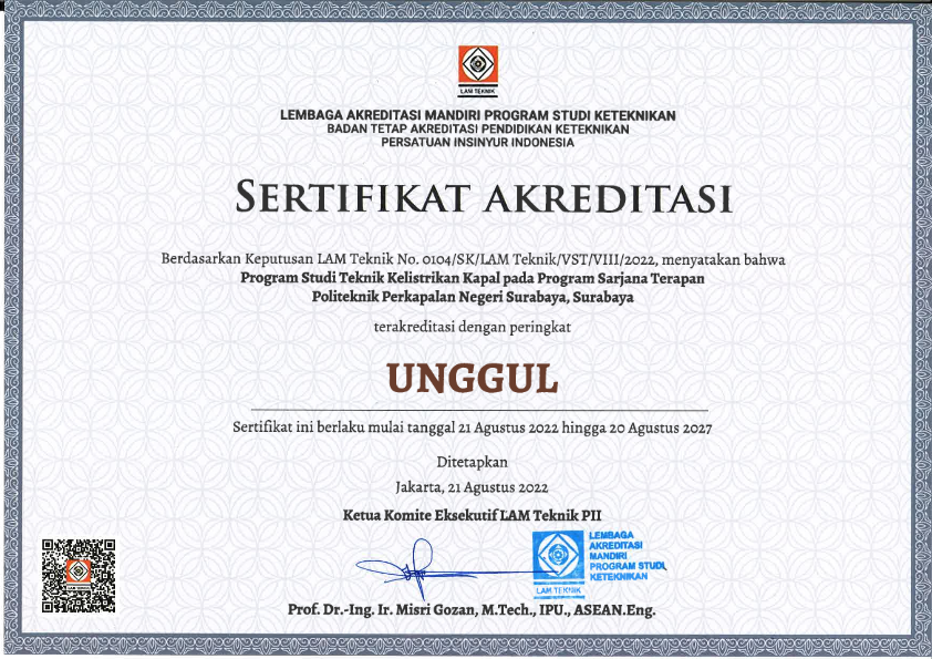 Congratulations on the achievement of the Ship Electrical Engineering Study Program which has been CERTIFIED EXCELLENT ACCREDITATION.